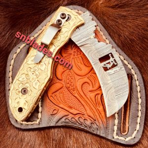 Handmade Damascus Steel Hawkbill Lineman Folding knife