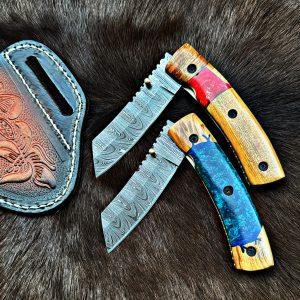 New custom made Damascus steel Two Folding knives set.Best gift For her Happy New year.
