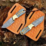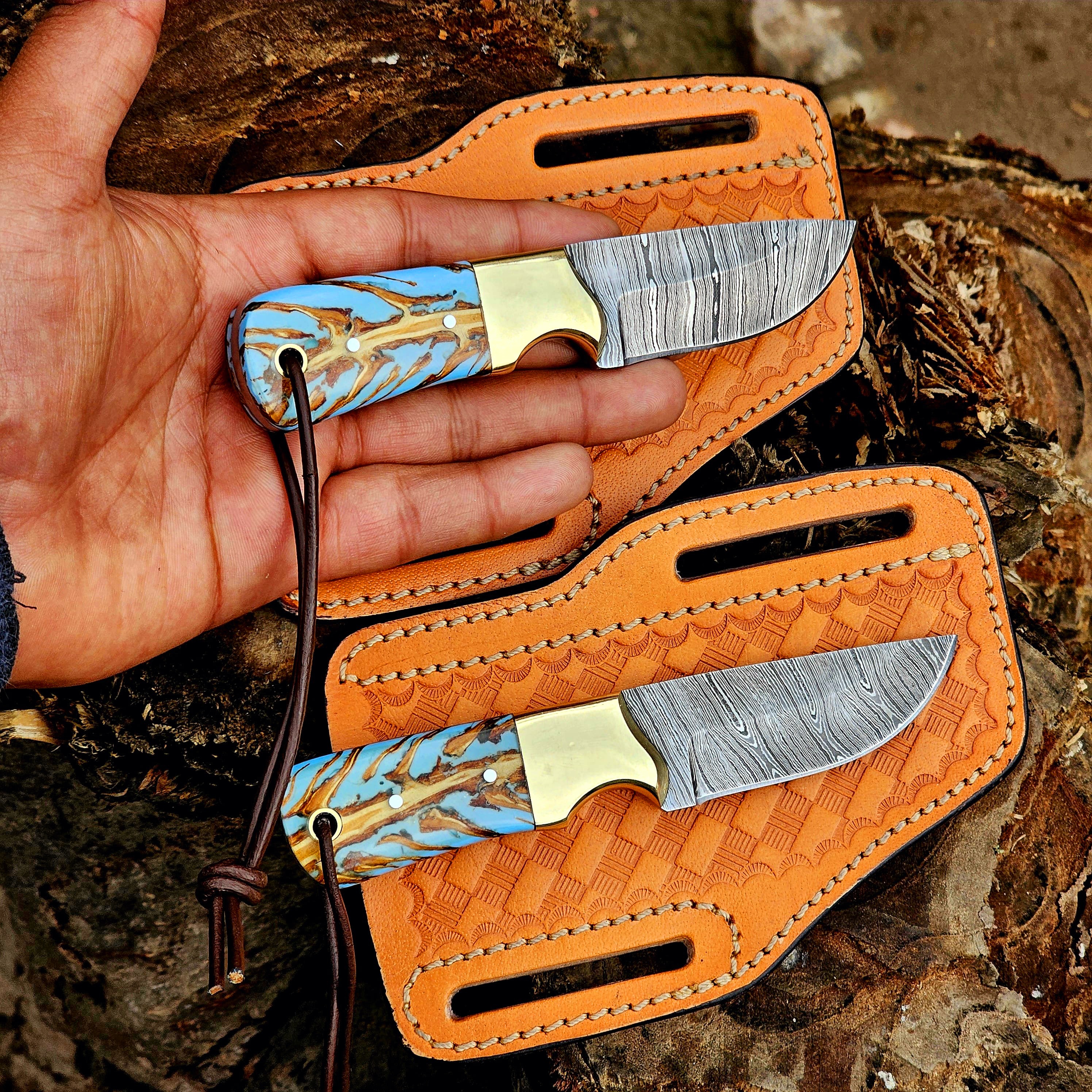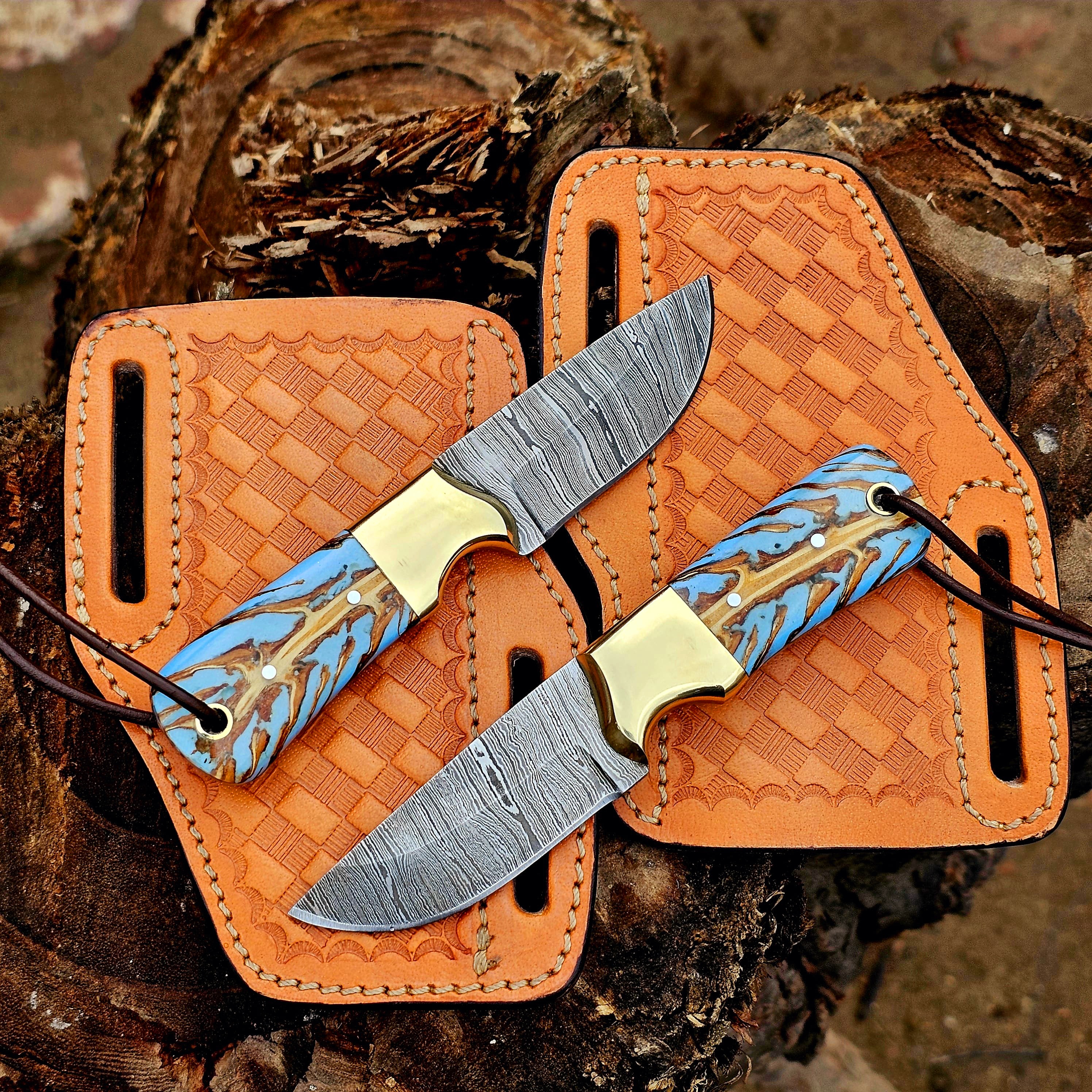Custom Made Damascus Steel Fixed Blade Western Cowboy Two Skinner knives set.