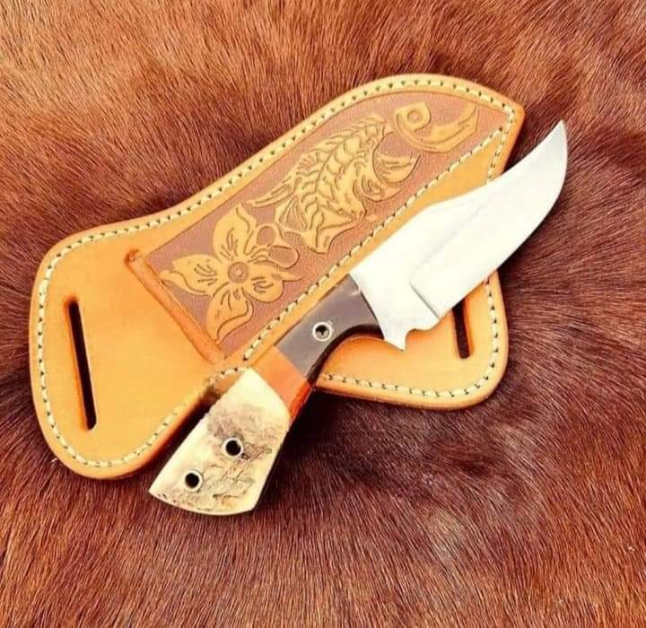 custom Handmade J2 steel skinner knife overall length 8″inches handle made of Buffalo Horn and Ram horn shrap edge and still long time comes with leather sheath…