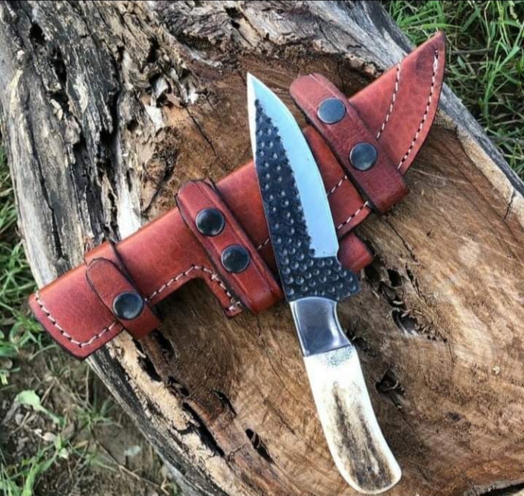 Custom handmade 1095 steel hunting knife overall length 8″inches handle made of stage Horn shrap edge and still long time comes with leather sheath..