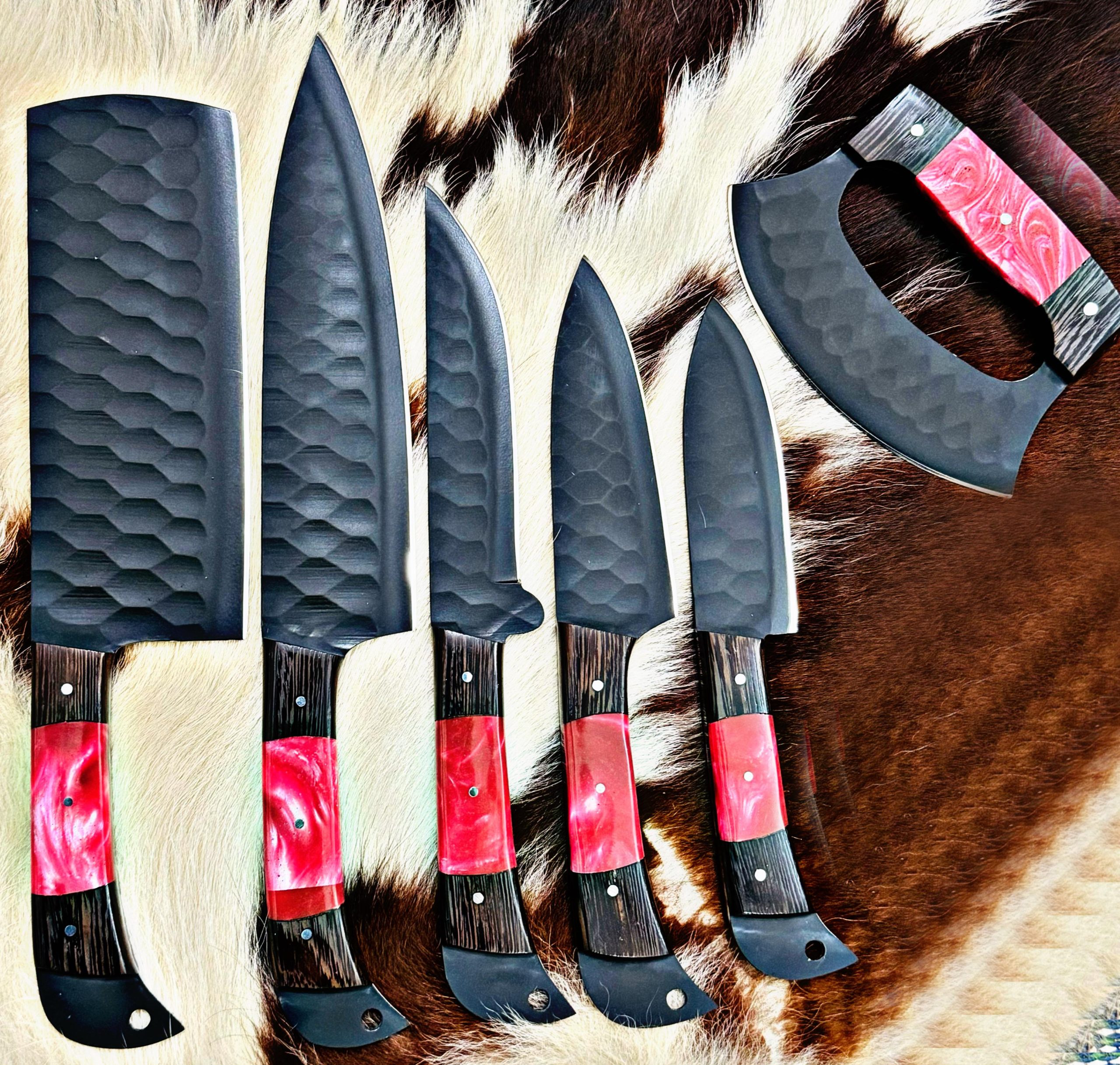 Custom Made 1095 Steel Full Tang Blade Kitchen knives set..