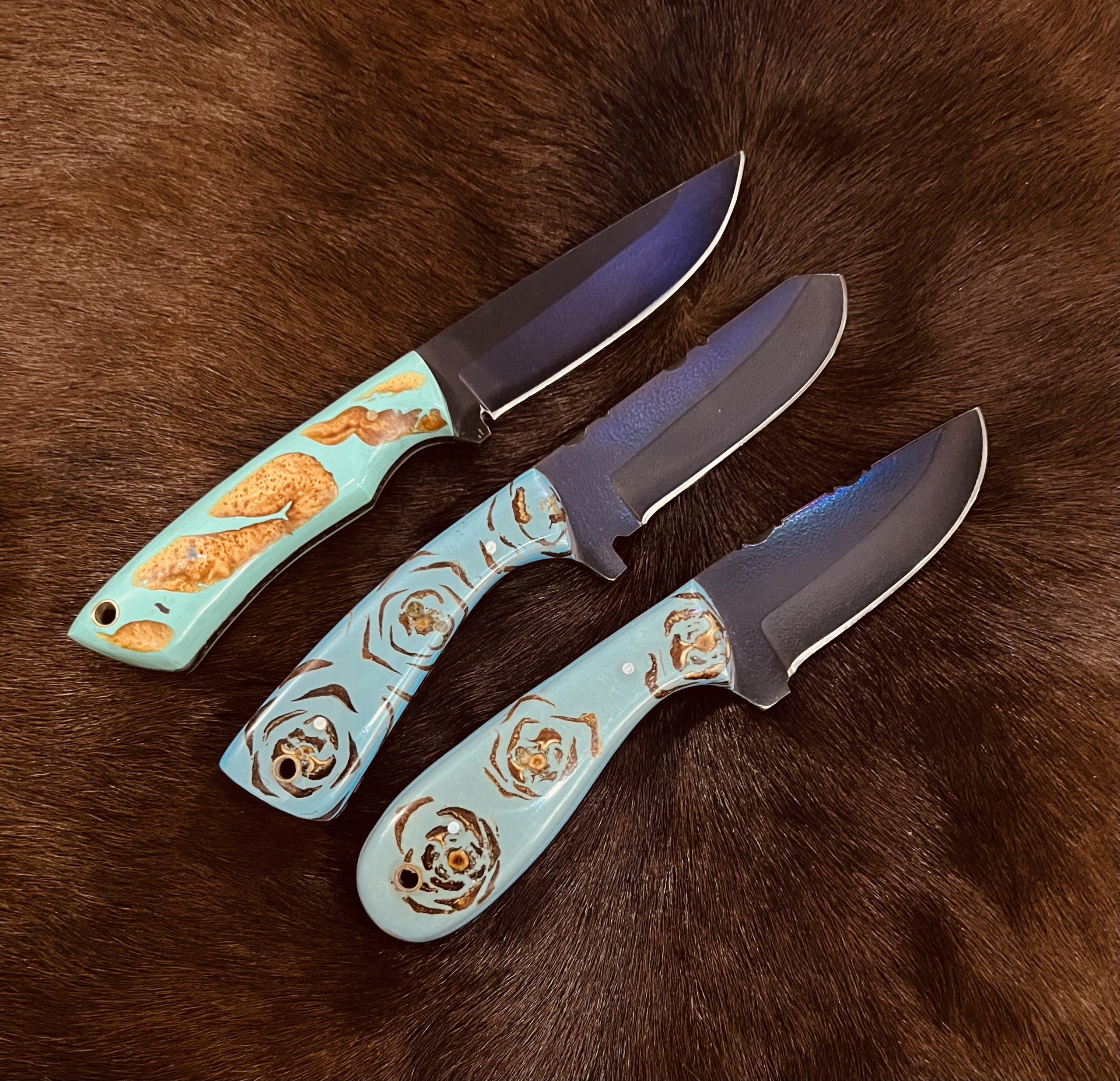 Handmade 1095 Steel Three cowboy Skinner knives for sale.