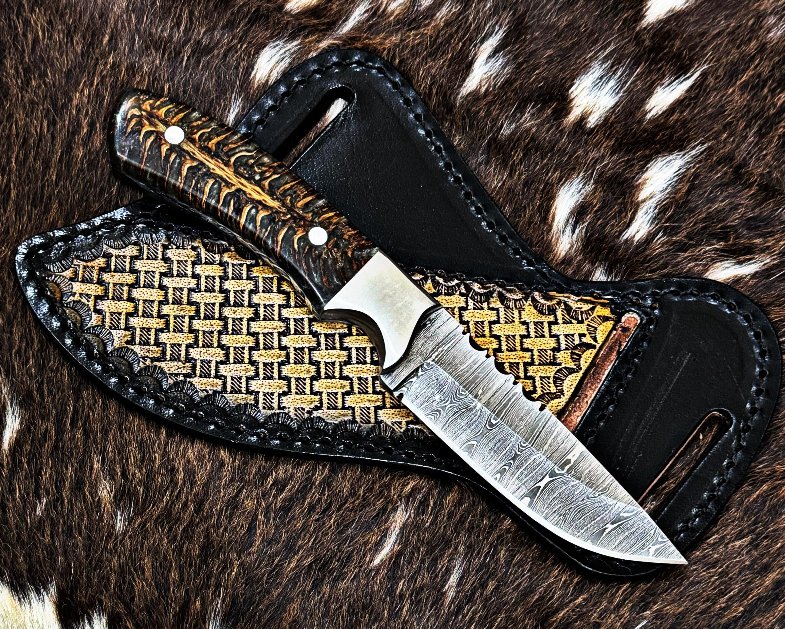 Custom Made Damascus steel cowboy Skinner knive.