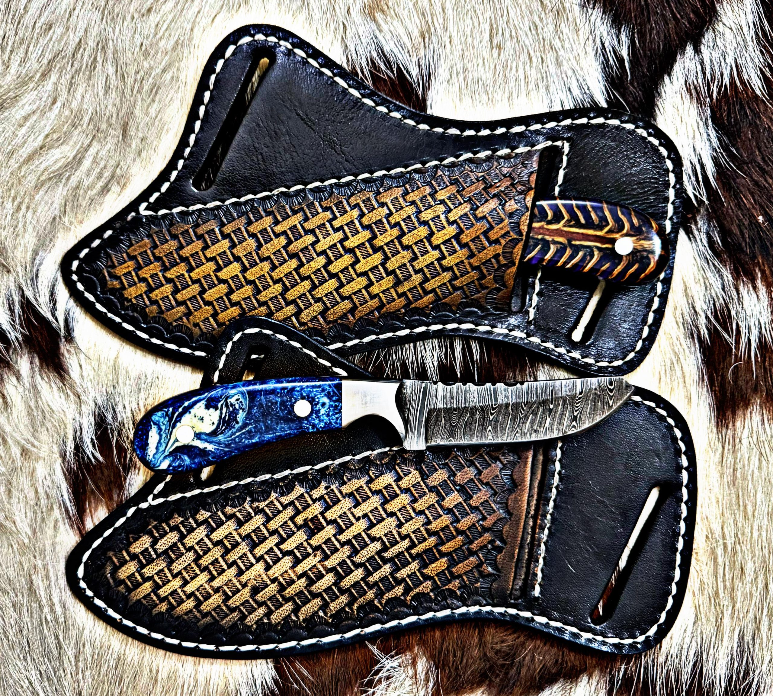 Custom Made Damascus steel Two cowboy 7” inches Skinner knives.