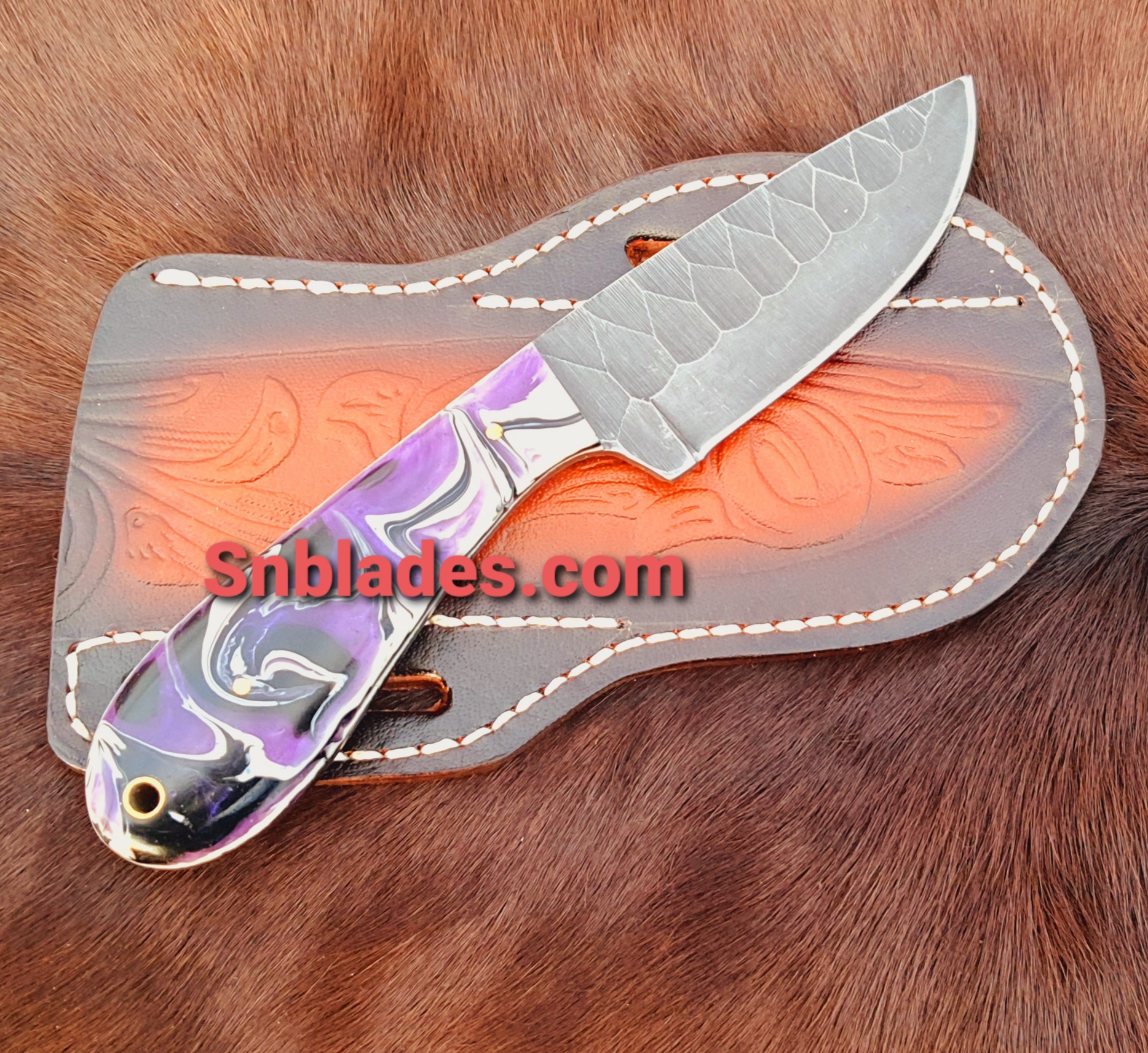 Handmade 1095 Crobin Steel cowboy skinner knife overall length 8″inch handle made of Resin hold edge and comfortable handle comes with leather sheath.