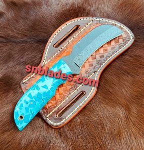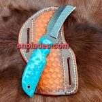 Handmade 1095 steel Hawksbill lineman skinner knife overall length 8″inch Handle made of Resin hold edge and comfortable Handle comes with leather sheath.