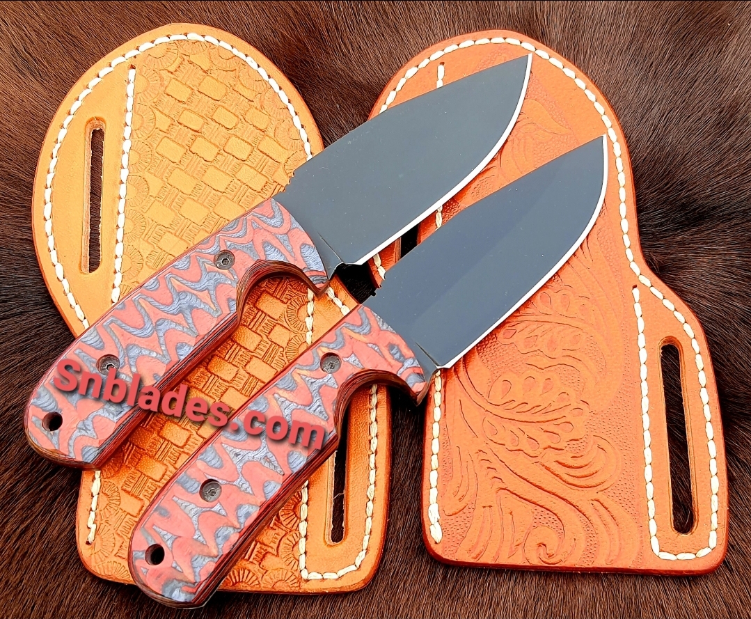 Handmade 1095 steel two Cowboy Skinner Knifes set Overall length 8″inch Handle made of Dollar wood hold edge and comfortable handle comes with two leather sheaths..
