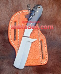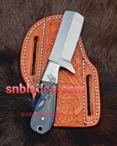 Handmade D2 steel Cowboy bull cutter knife overall length 7″inch Handle made of Buffalo Horn Hold edge and easy Handle comes with Leather sheath..