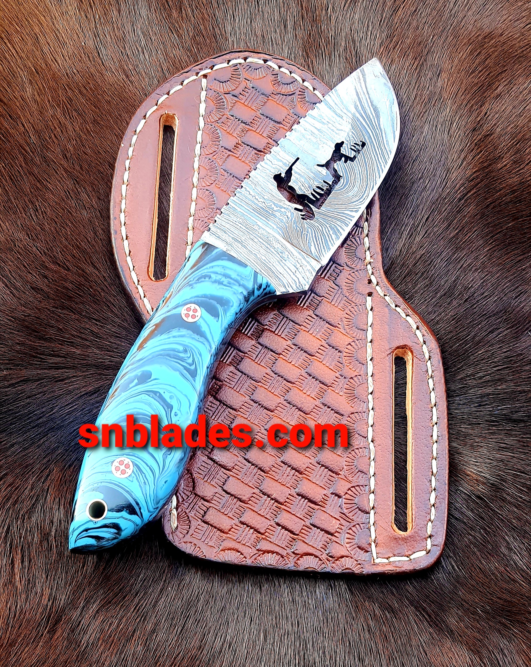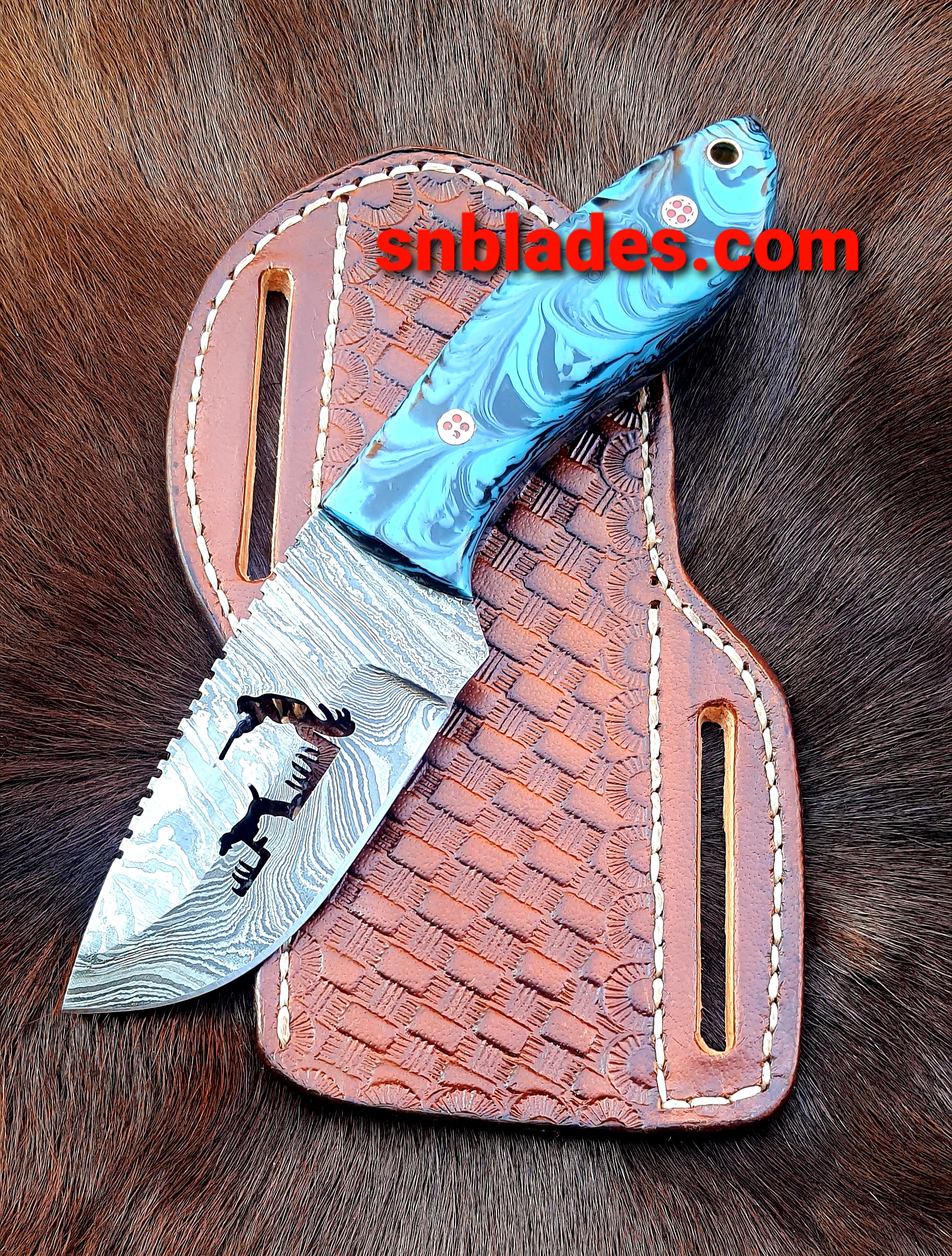 New Custom made Damascus steel cowboy Skinner knifes set.