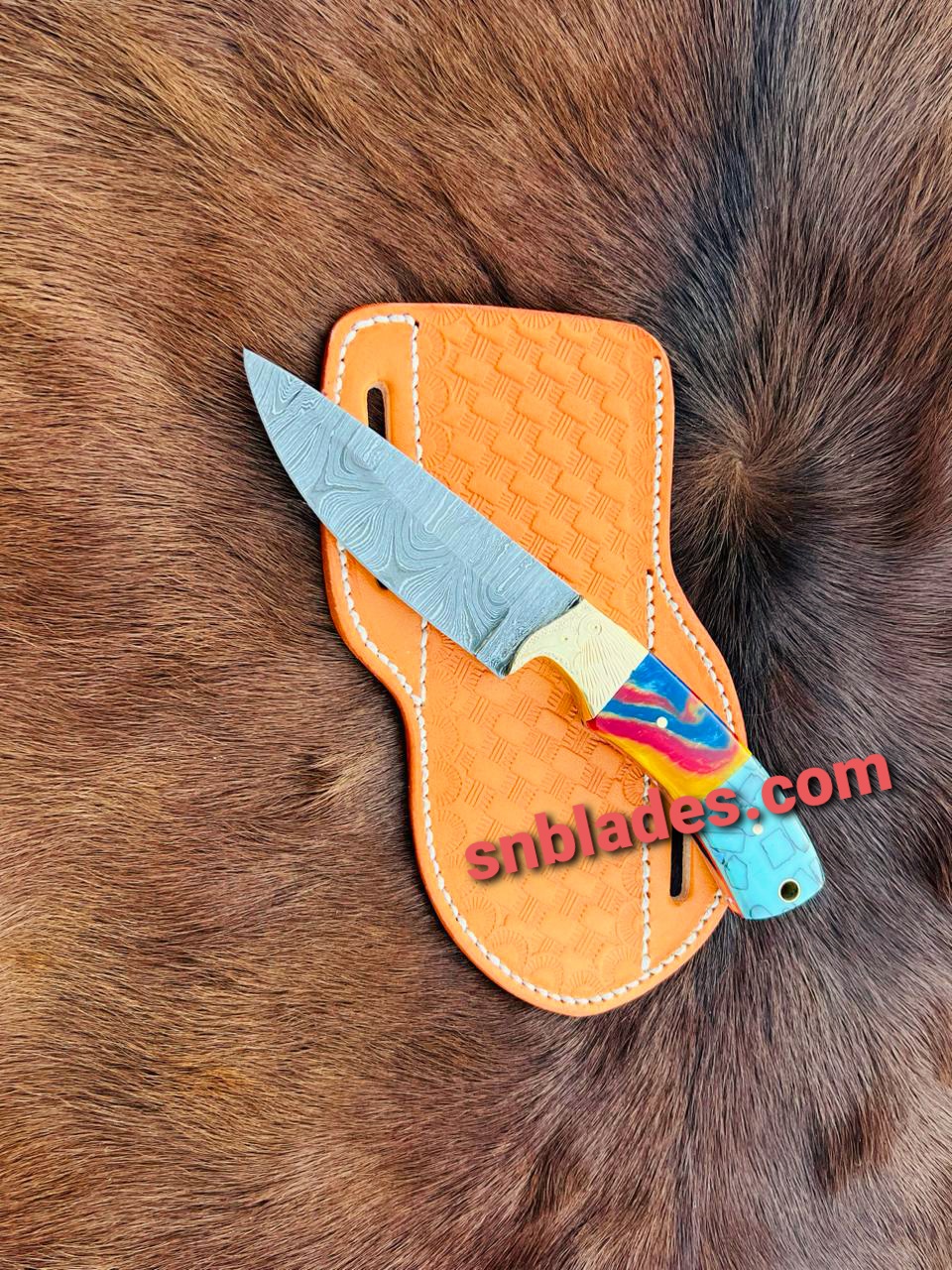 Handmade Damascus steel cowboy skinner knife overall length 8″inch Handle made of Rasin hold edge and comfortable Handle comes with leather sheath.