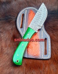 Handmade Damascus steel cowboy skinner knife overall length 9″inch handle made of dollar wood hold edge and comfortable handle comes with leather sheath…
