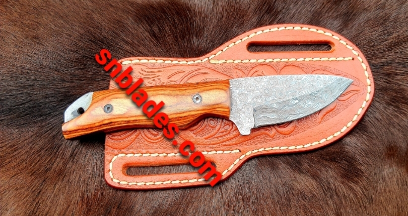 Handmade Damascus steel Cowboy Skinner knife overall length 8″inch handle made of dollar wood hold edge and comfortable handle comes with Leather sheath.