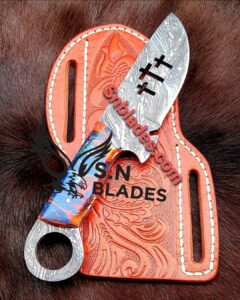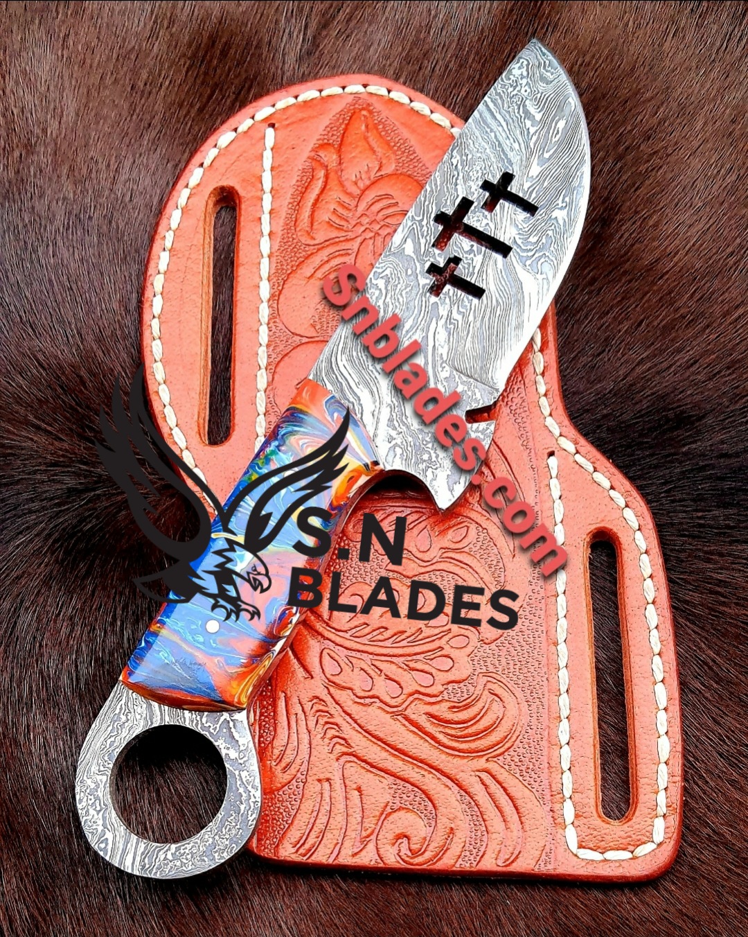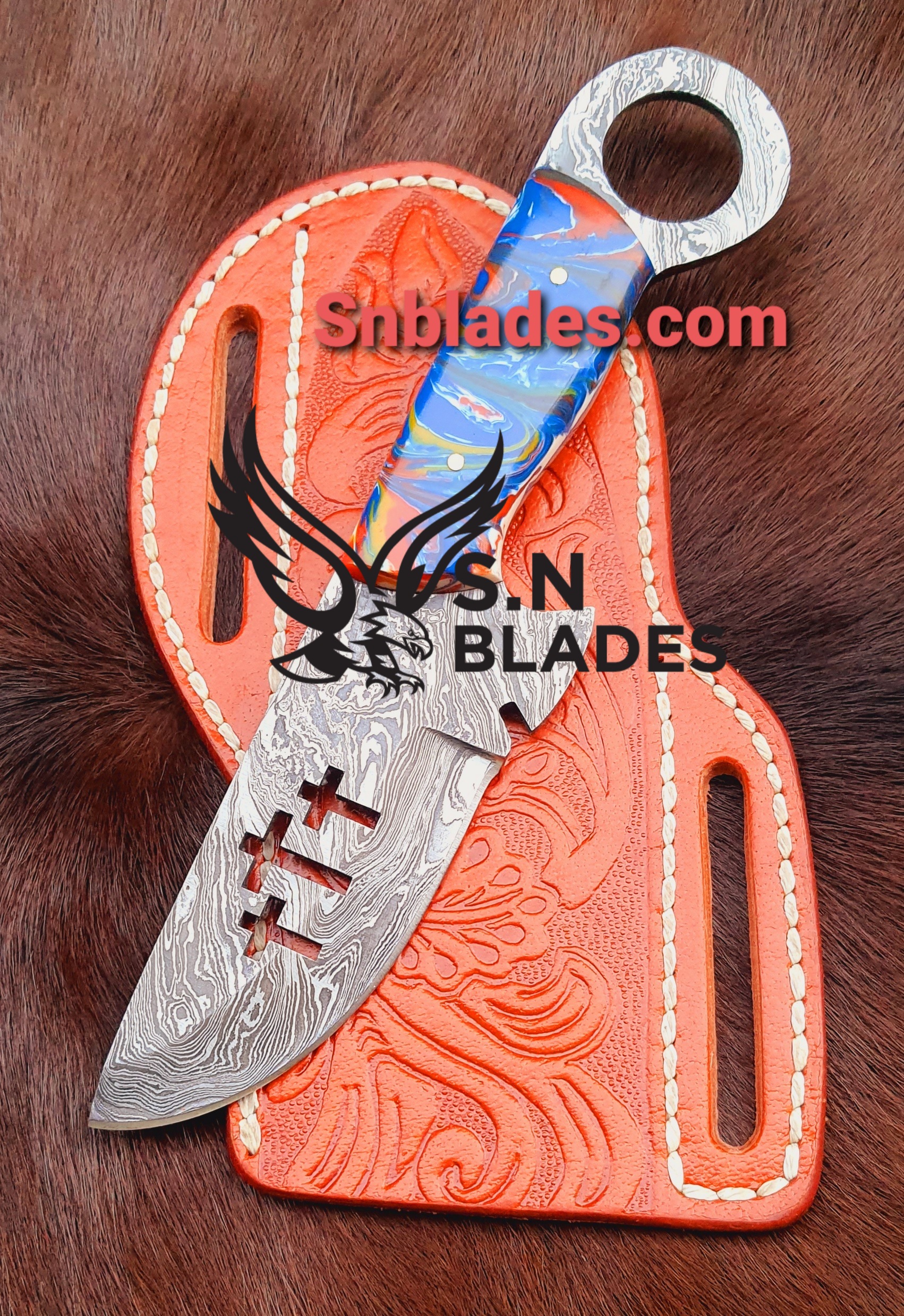Handmade Damascus Steel Cowboy Skinner Knife overall length 8″inch handle made of Resin hold edge and comfortable handle comes with leather sheath..