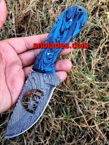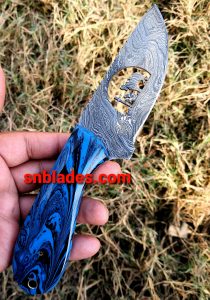 Handmade Damascus steel cowboy skinner knife overall length 8″inch handle made of Resin hold edge and Comfortable handle comes with leather sheath.
