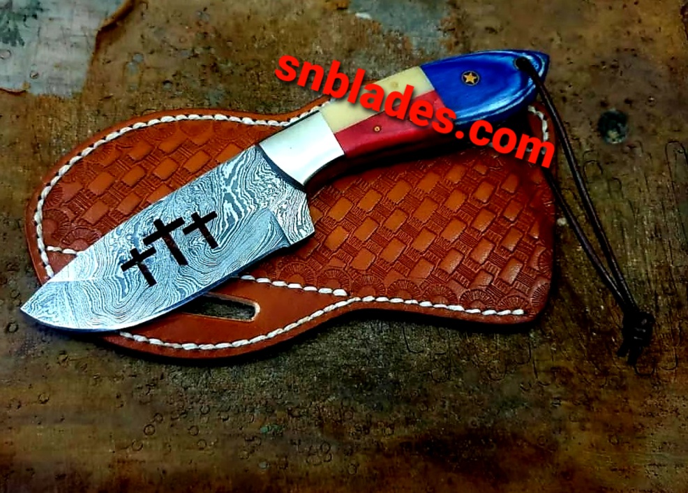 Custom Handmade Damascus steel cowboy skinner knife