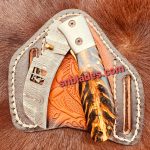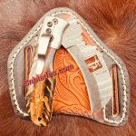 Handmade Damascus steel bull cutter knife with cross Darw leather sheath
