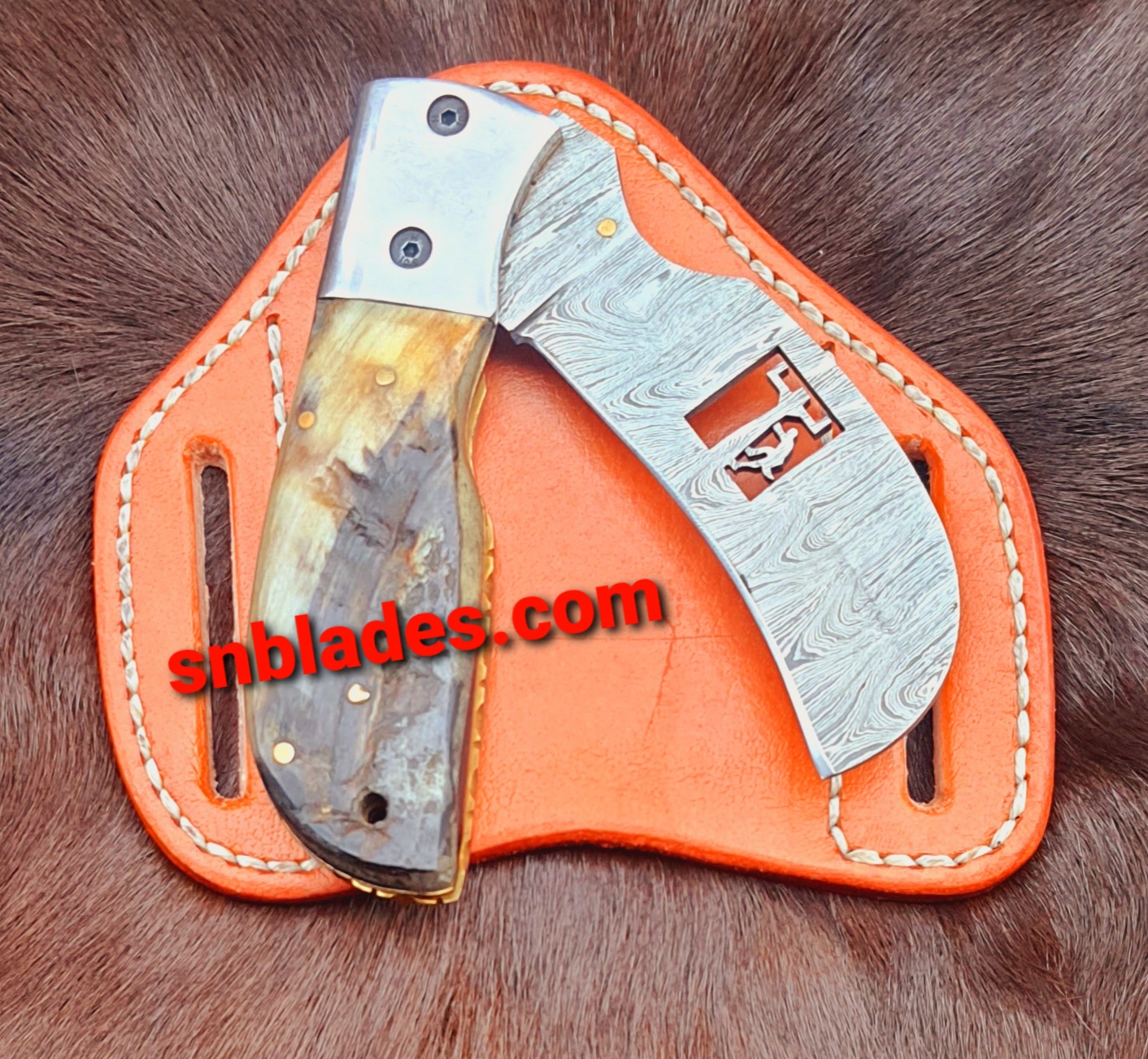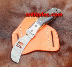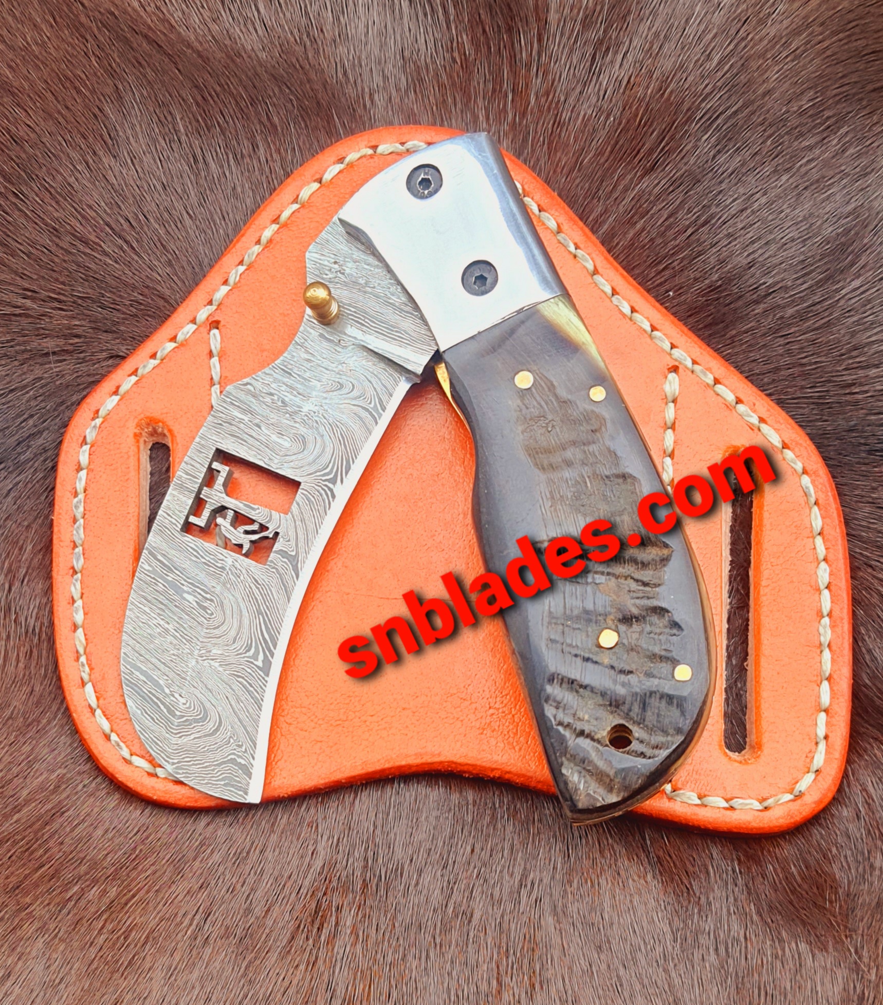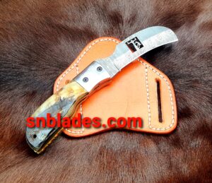 Handmade Damascus Steel Hawksbill Lineman Folding Knife
