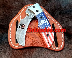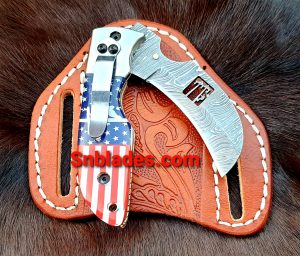 Handmade Damascus steel Hawksbill lineman folding knife overall length 8″inch handle made of Resin holds the edge and comfortable handle comes with leather sheath..