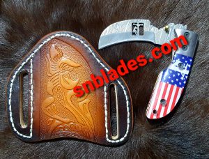 Handmade Damascus steel Hawksbill lineman folding knife/with cross darw leather sheath $300.00 Original price was: $300.00.$135.00Current price is: $135.00.