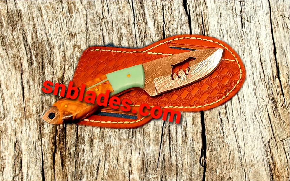 Custom made Damascus steel cowboy skinner knife