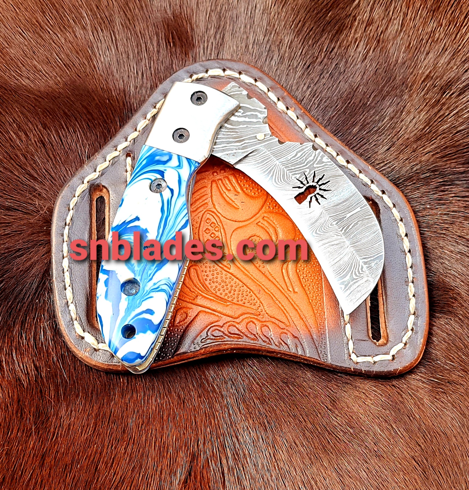 Handmade Damascus Steel IBEW Hawksbill Lineman Folding Knife