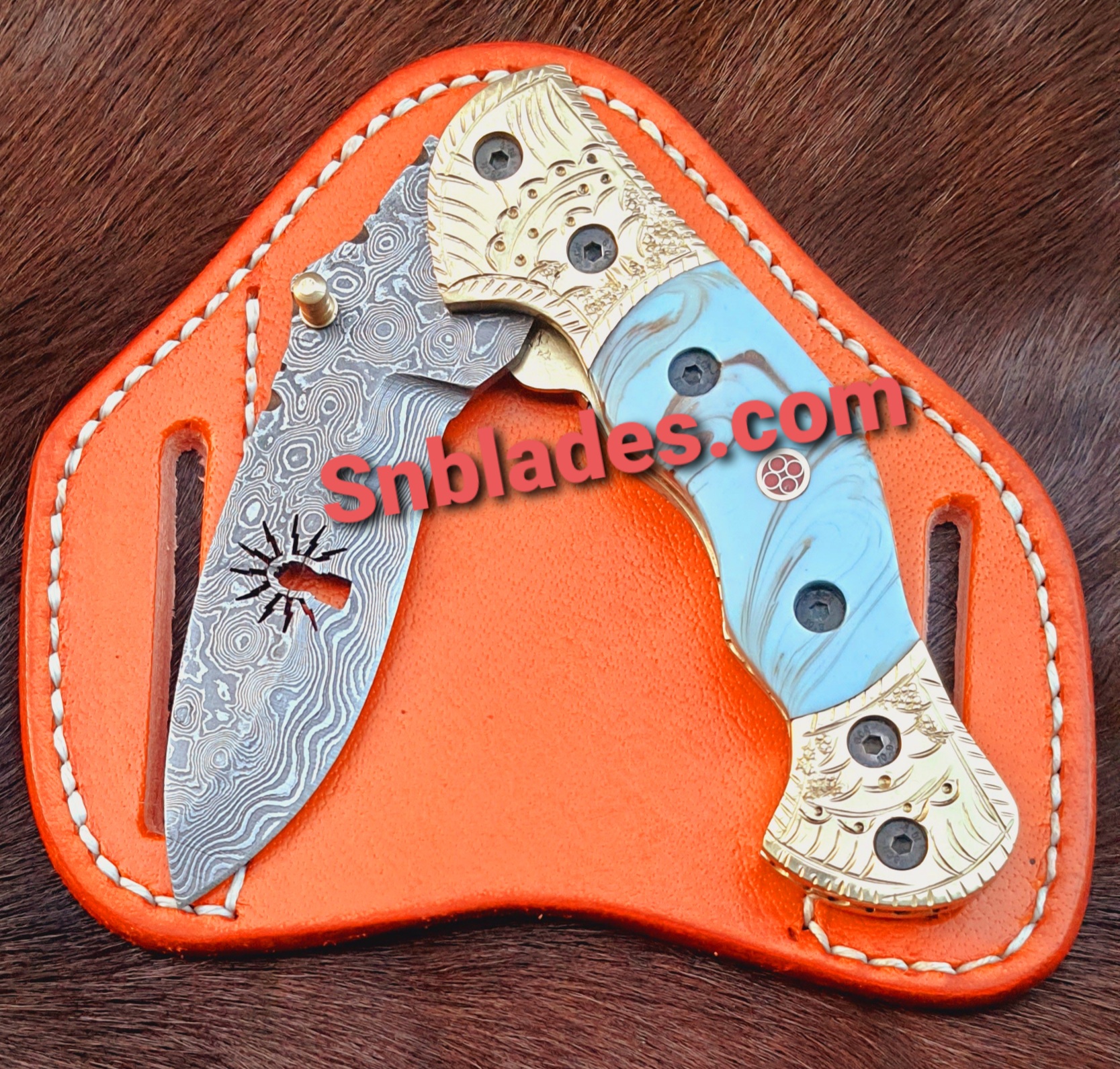 Handmade Damascus steel IBEW Hawksbill lineman Folding knife overall length 8″inch Handle made of Resin hold edge and comfortable handle comes with leather sheath..