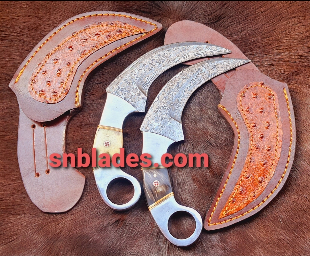 Handmade Damascus Steel two karibet Skinner Knifes set.