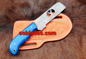 Handmade Damascus steel nut cutter knife overall length 8″inch handle made of macrita wood hold edge and comfortable handle comes with leather sheath..