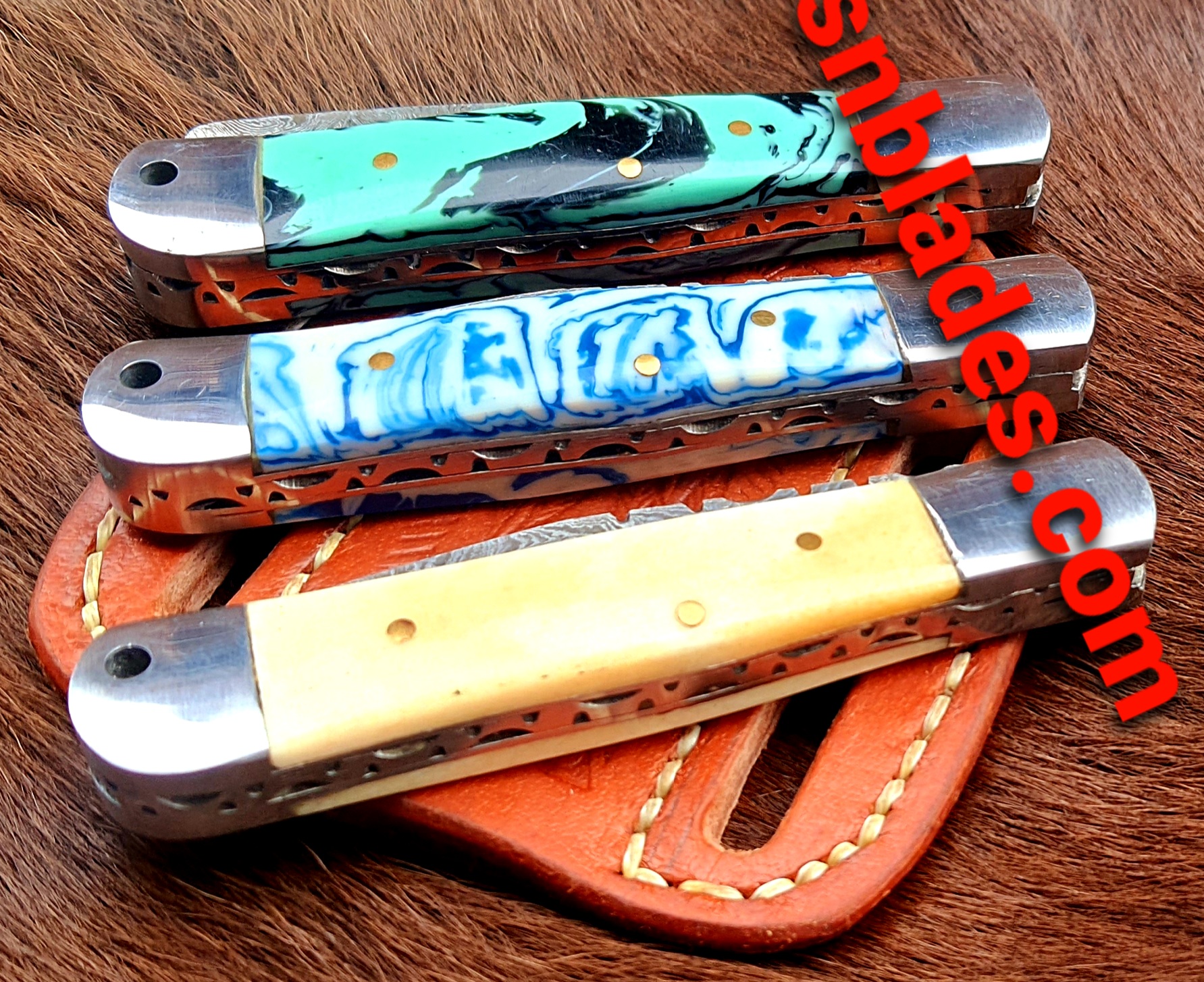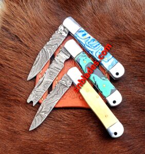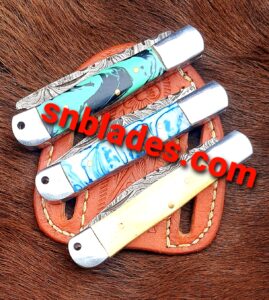 Handmade Damascus Steel Three Cowboy Folding Knifes