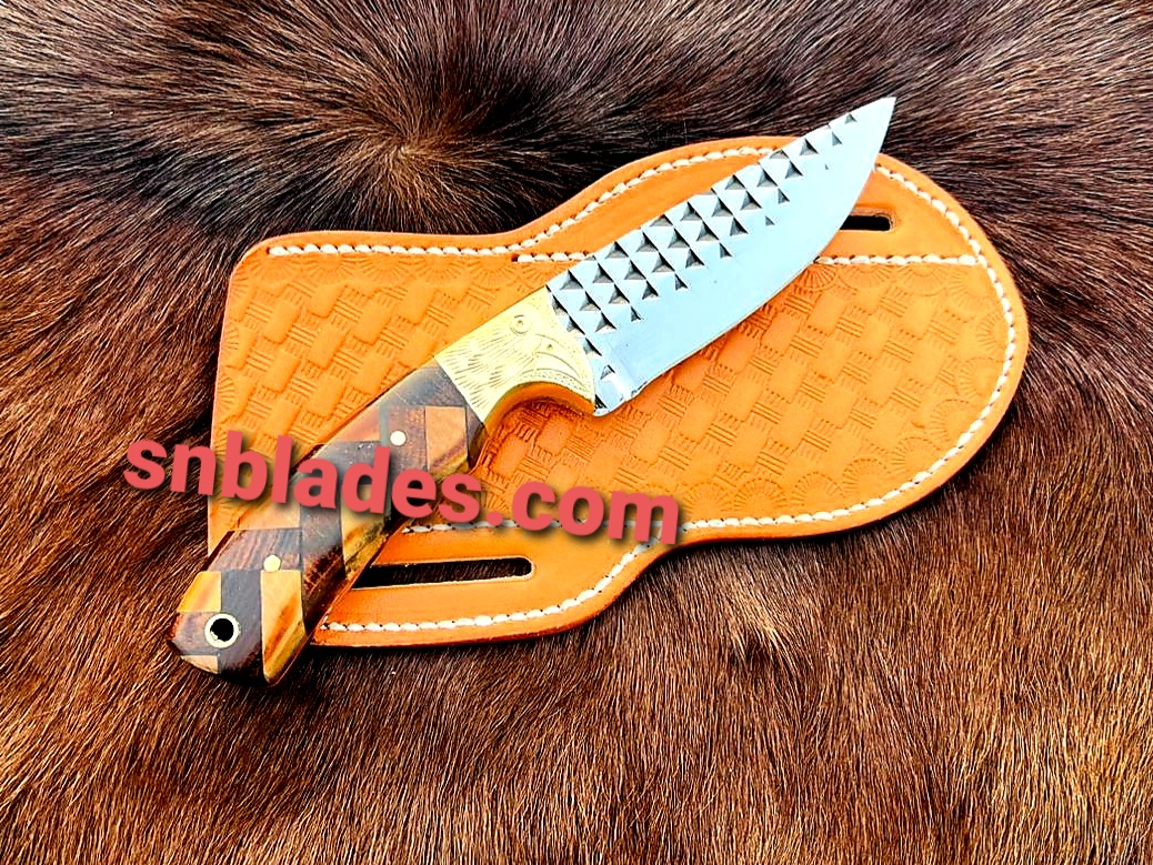 Handmade Rasp steel cowboy Skinner knife overall length 8″inch Handle made of Mix wood hold edge and comfortable Handle comes with leather sheath.