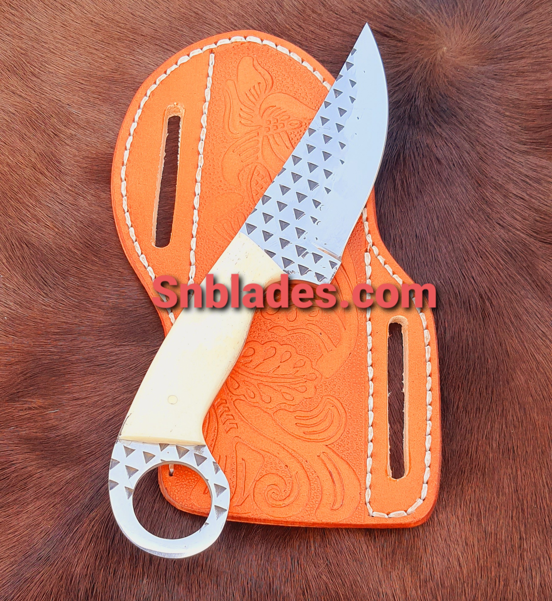 Handmade Rasp steel Cowboy Skinner knife overall length 8″inch Handle made of camel boon hold edge and comfortable handle comes with leather sheath..