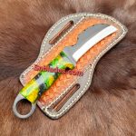 Handmade Damascus Steel Two Cowboy Skinner knives with leather sheaths