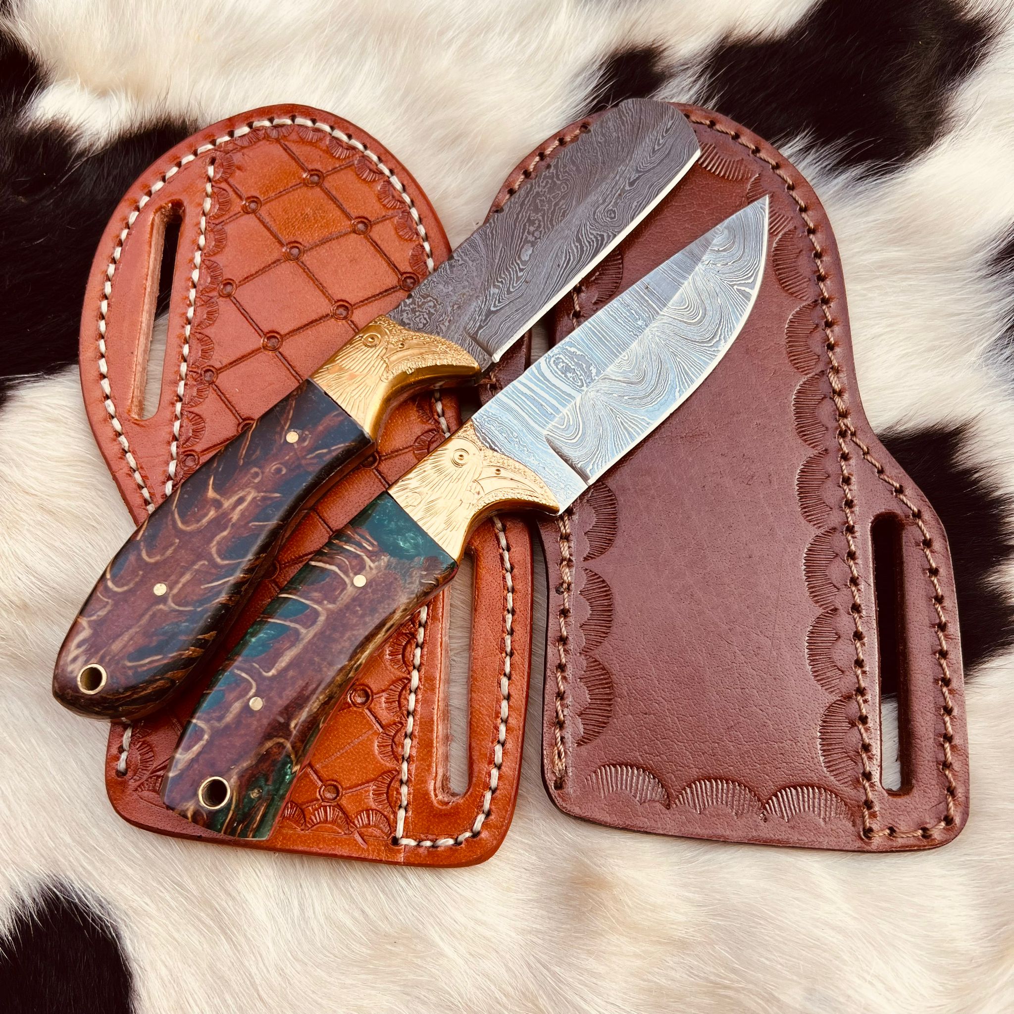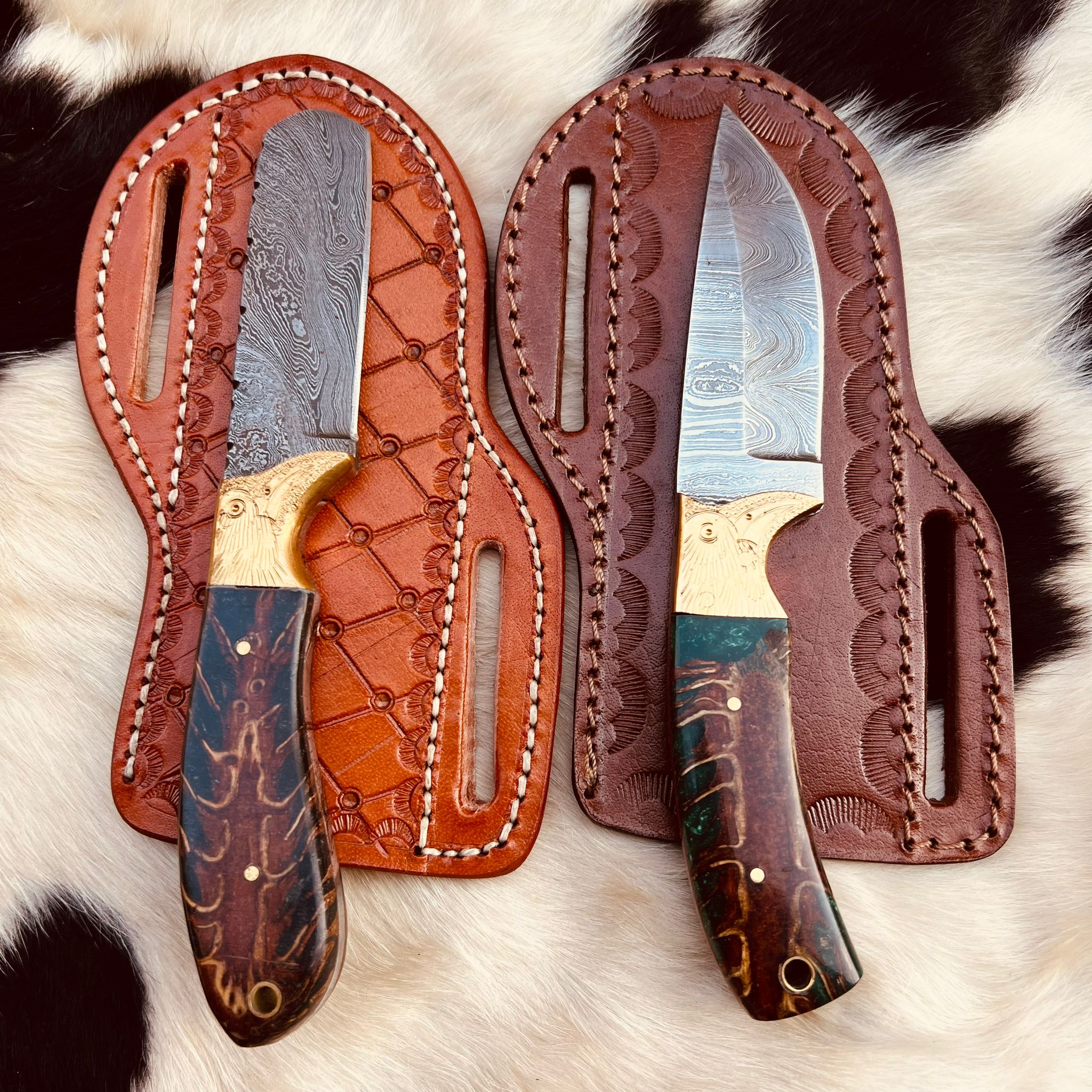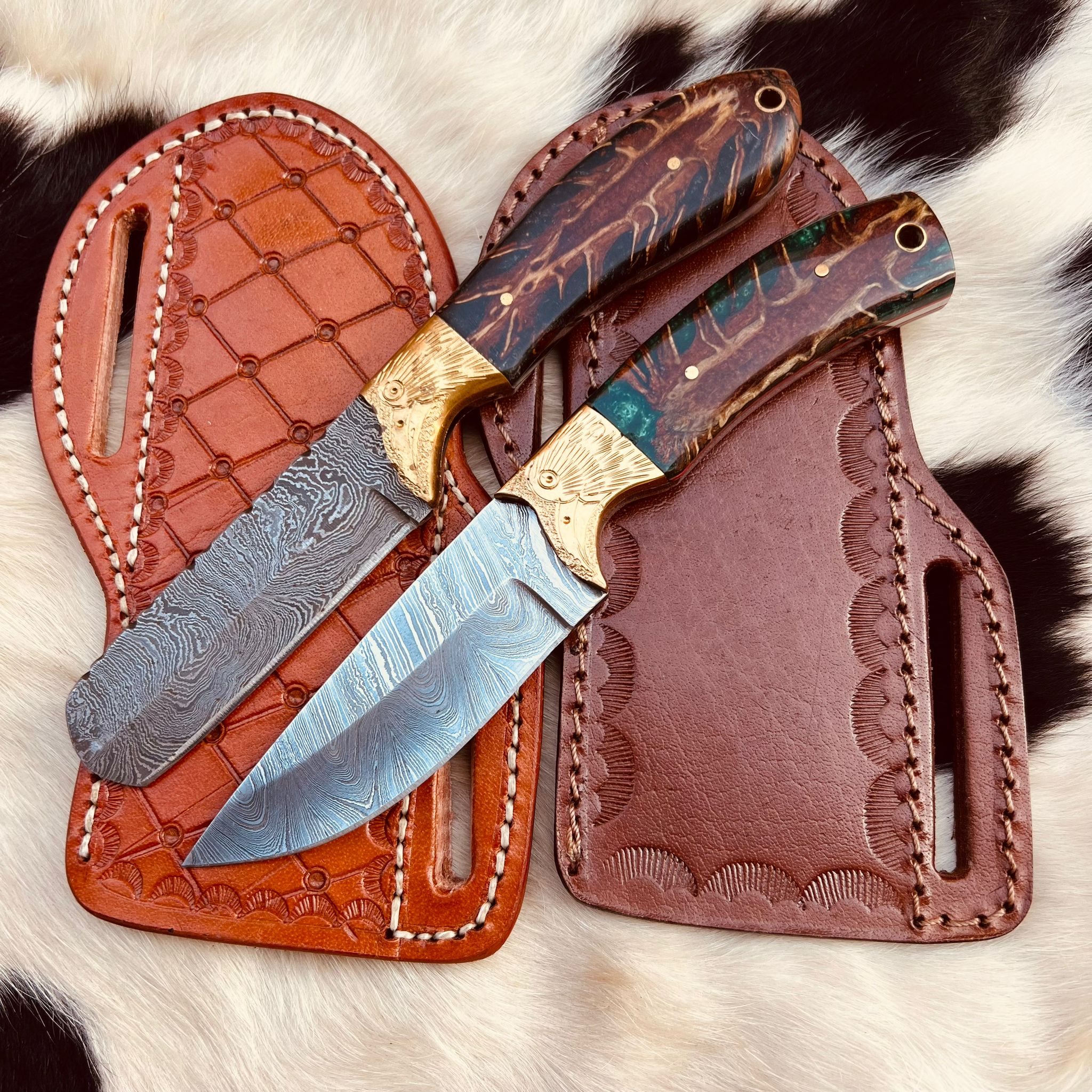 New Handmade Damascus Steel Fixed Blade Two Skinner knife set