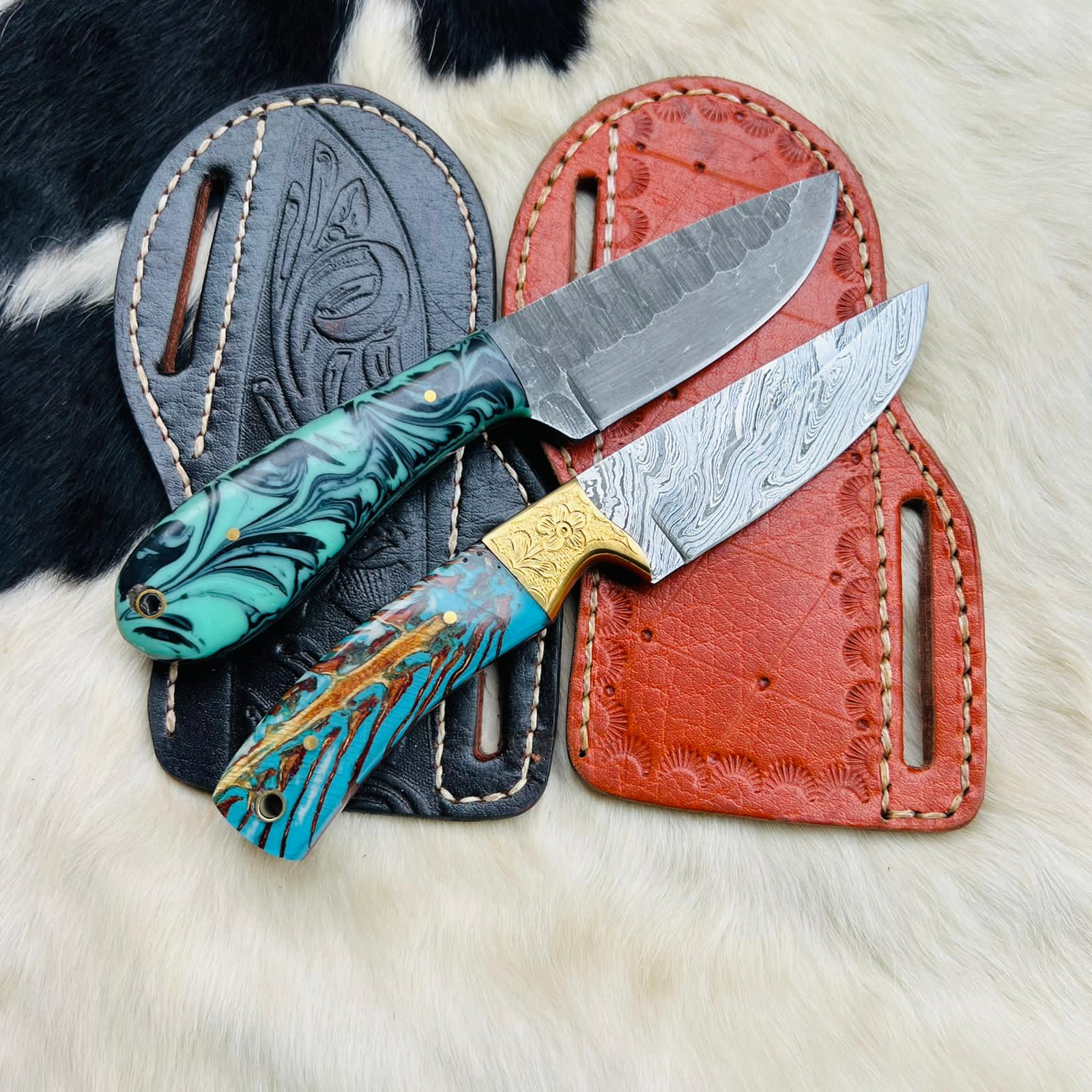 Be the first to review “New Custom made Damascus Steel and 1095 Steel Full Tang Blade Two Cowboy Skinner knives set” Cancel reply