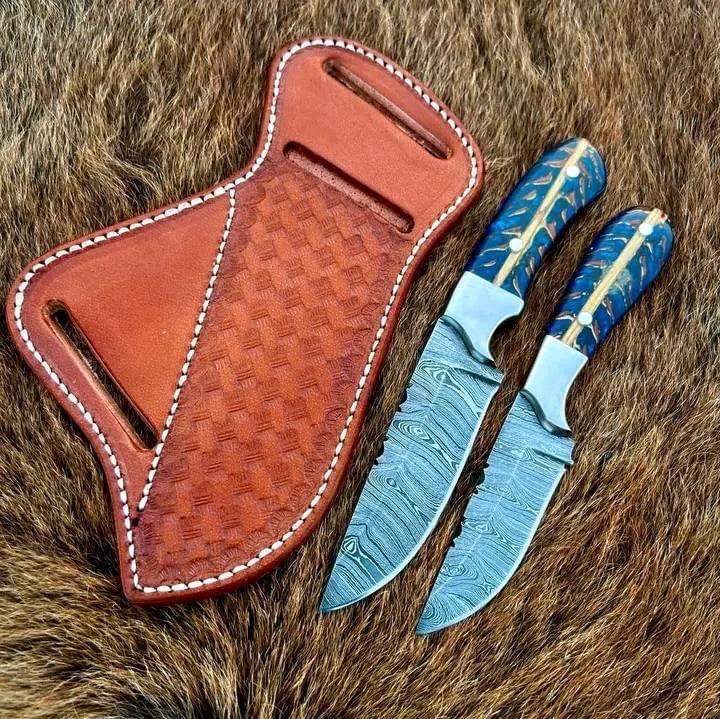 Custom Made Damascus Steel Full Tang Blade Two Cowboy Skinner knife set.