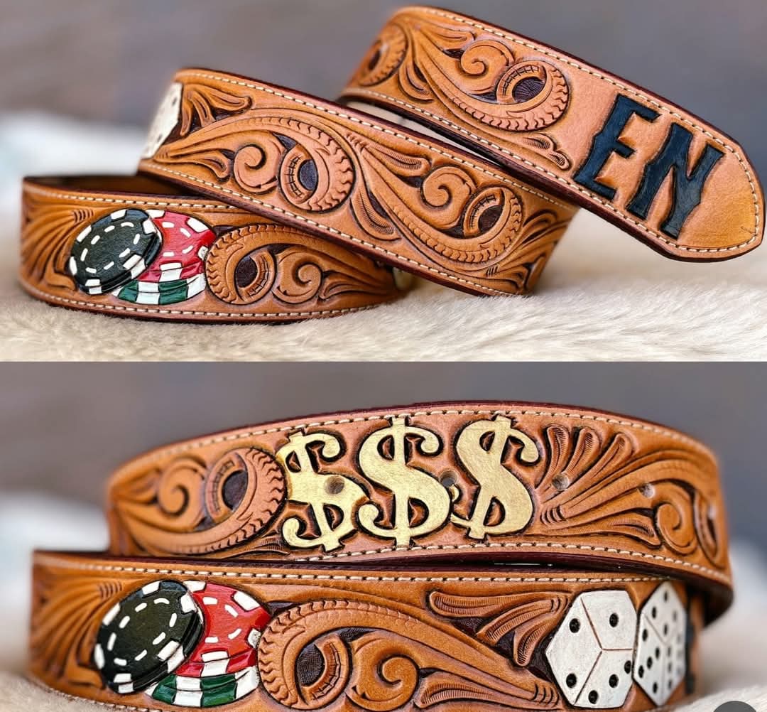 Custom handmade fully hand tooled leather belts. genuine leather handmade with a lifetime warranty. Free initials or brand engraving. Ship to door.