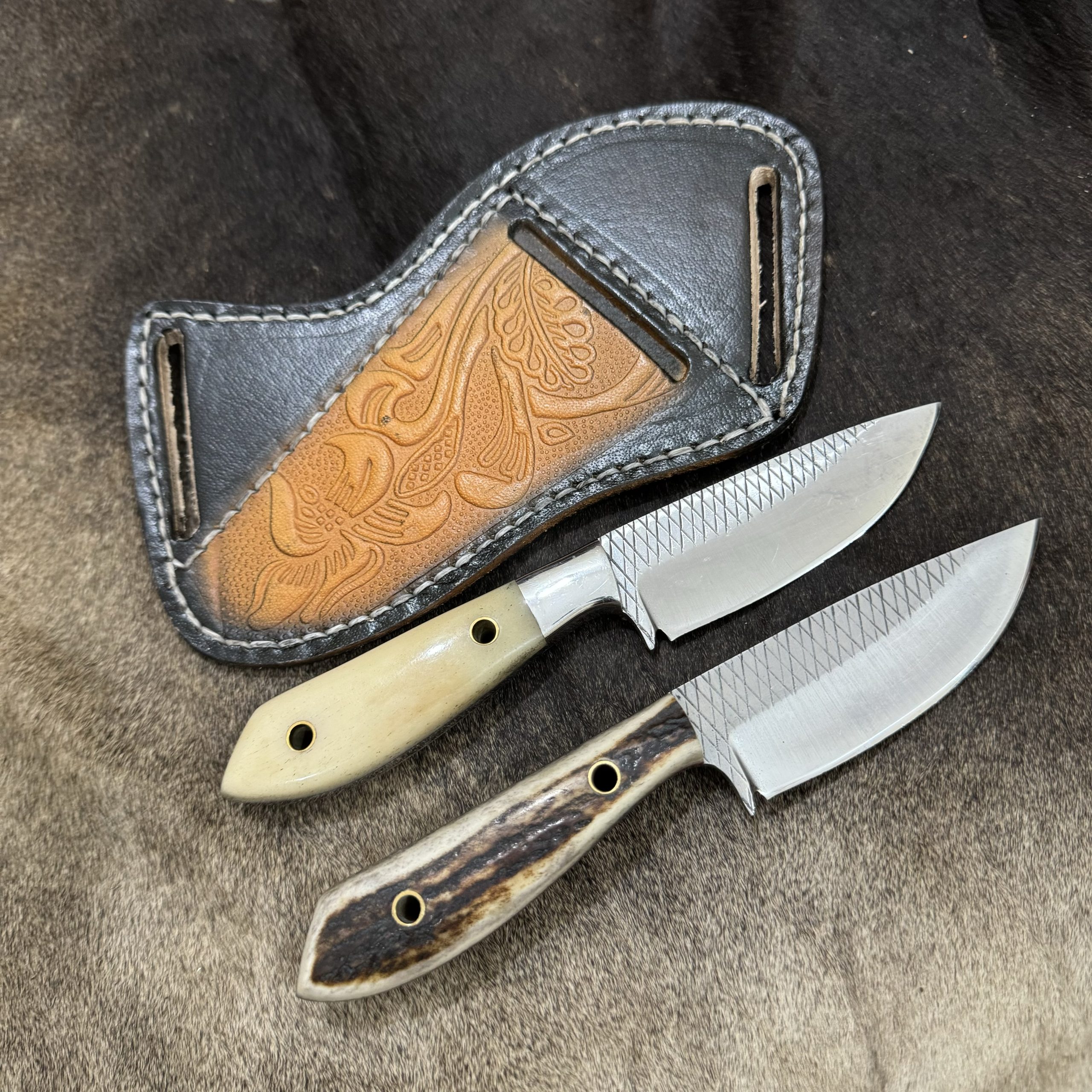 Custom Made Horses Rasp Steel Full Tang Blade Two Cowboy Skinner knife set.