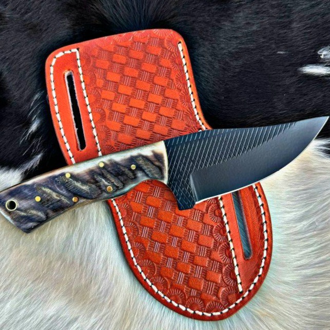 Custom Made Rasp Steel Full Tang Blade Powder Coated Cowboy Skinner knife