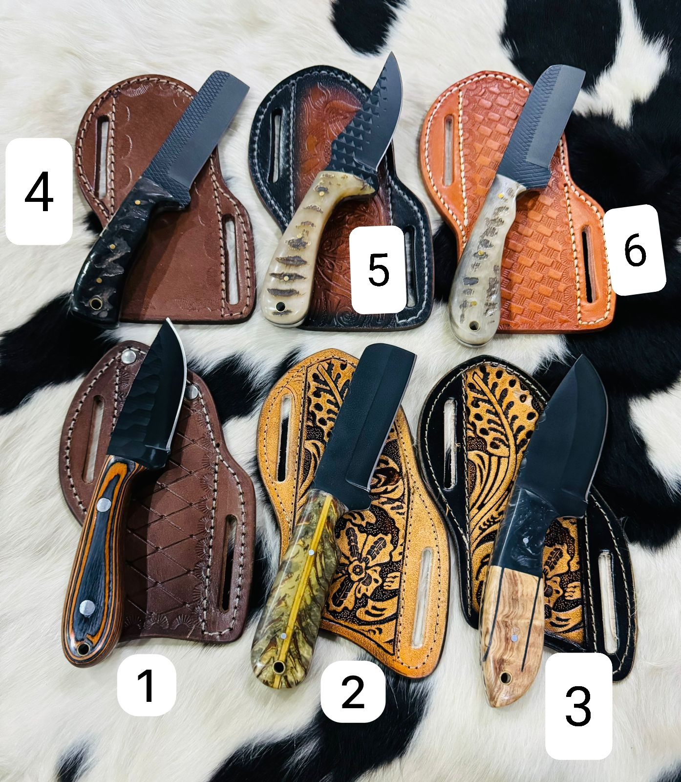New Handmade 1095 Rasp Steel 6 cowboy skinner knives with 6 leather Sheaths