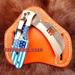 Handmade 1095 steel Hawksbill linemen Folding knife overall length 8″inch Handle made of print Resin Hold edge and comfortable Handle grip comes with leather sheath.