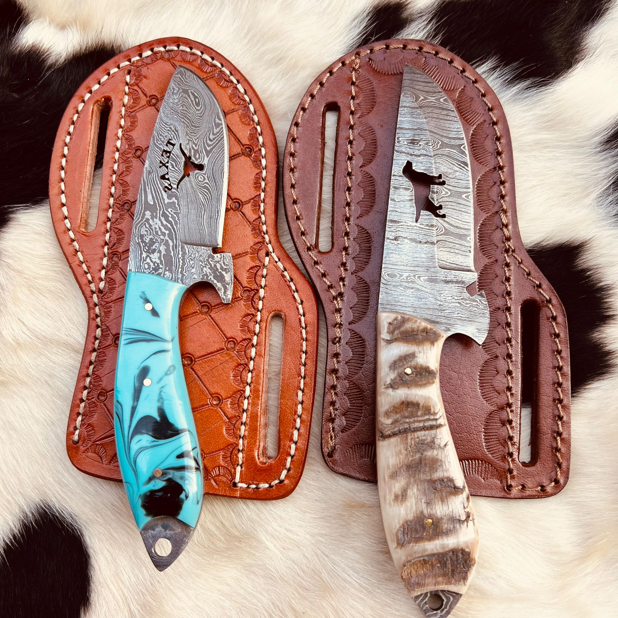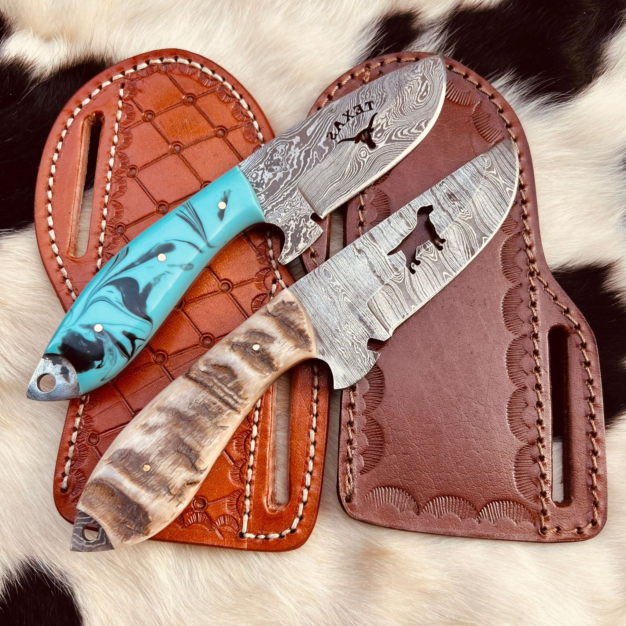 New Handmade Damascus Steel Fixed Blade Two Skinner knife set