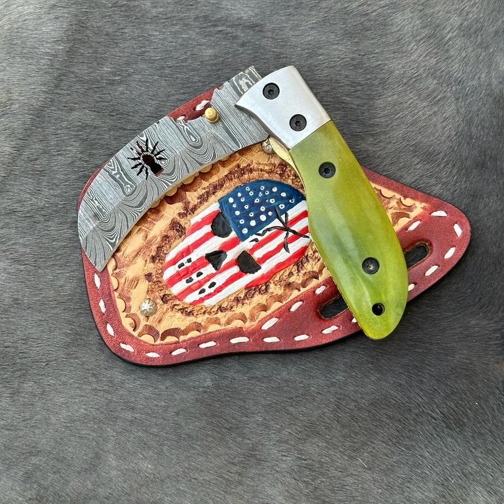 Custom Made Damascus Steel IBEW Hawkbill Lineman Folding knive.…